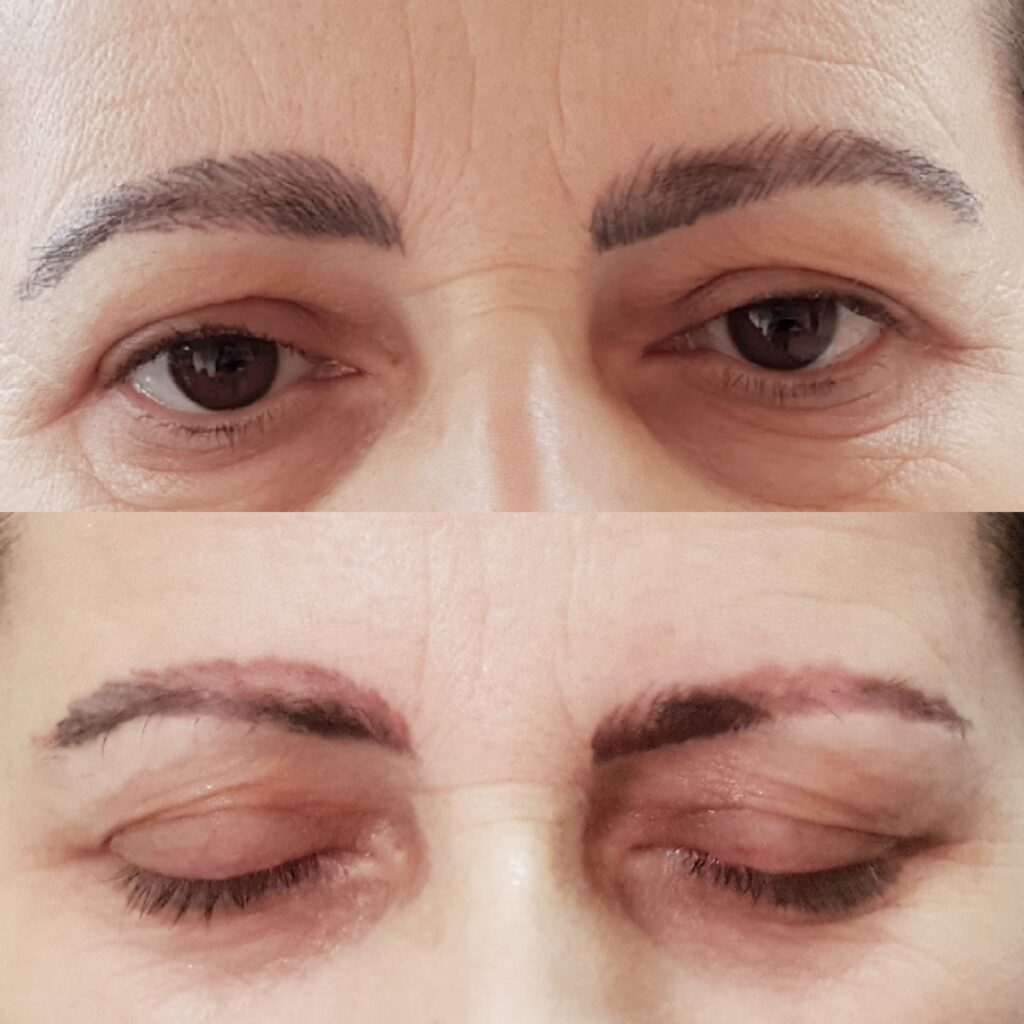 Ανυποψίαστη, λοιπόν, χωρίς να έχω δει προηγούμενη δουλειά της κυρίας για να πάρω μια γεύση από την αισθητική της, πήγα στο σπίτι της για να συνεργήσω όπως αποδείχθηκε, στο «έγκλημα» που έγινε στα φρύδια μου. Όσο διαρκούσε το -ας το πούμε- «Ημιμόνιμο Μακιγιάζ», δεν είχα εικόνα της διαδικασίας. Μόλις ολοκληρώθηκε, το θέαμα που αντίκρισα με πάγωσε.Τα νέα μου φρύδια ήταν ανόμοια μεταξύ τους, στραβά, μαύρα και παχιά. Ο εφιάλτης στο δρόμο με τα φρύδια. Tώρα μπορεί να κάνω και λίγο χιούμορ, αλλά τα πράγματα τότε δεν ήταν καθόλου αστεία!